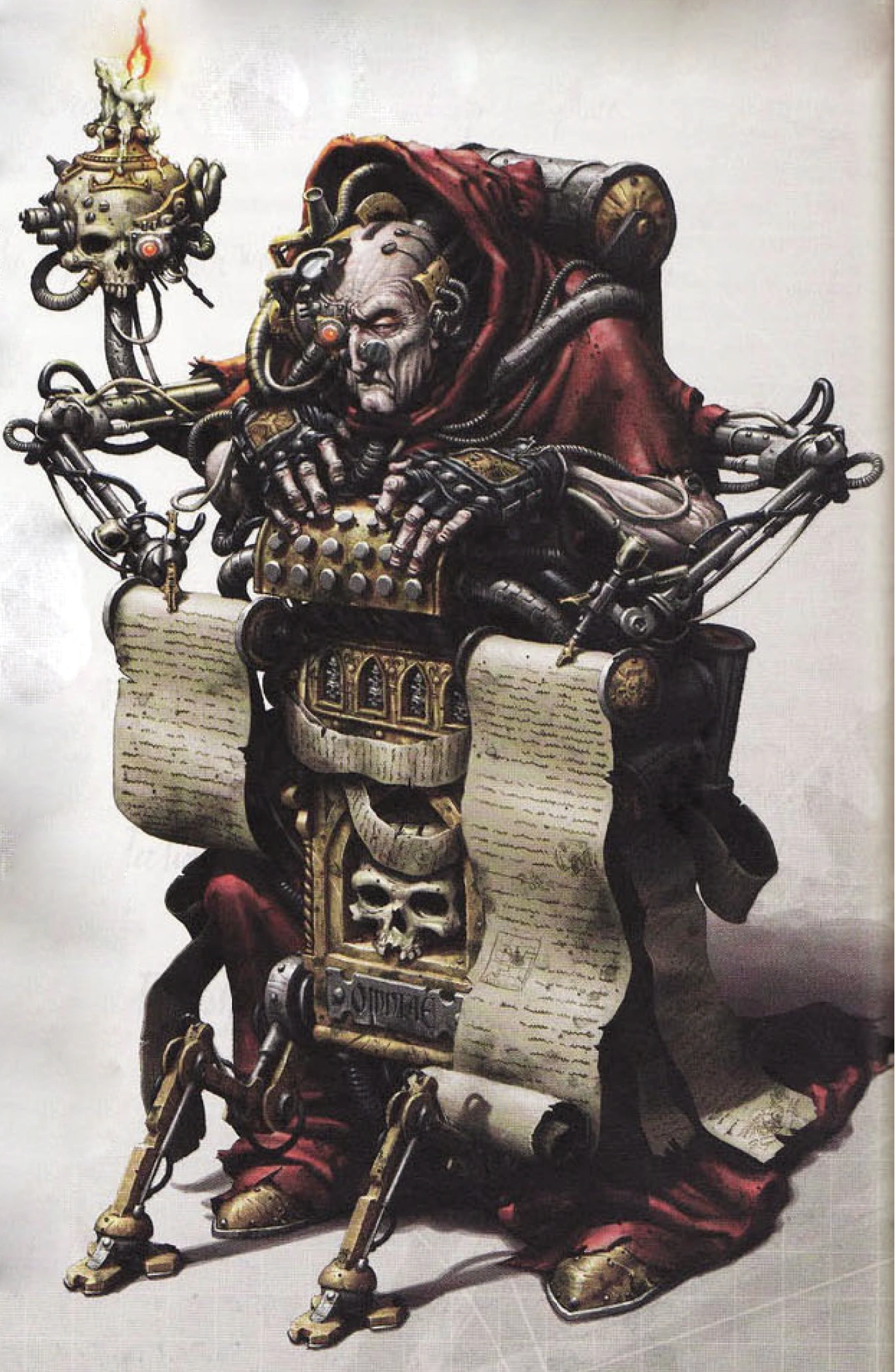 La mayoría de los Adeptos que trabajan duramente en el interior de gargantuescas salas abovedadas, en archivos olvidados o sentados en antiguos motores lógicos de lectura de pergaminos están considerados como individuos cultos e ilustrados para la norma imperial. Van desde los bibliotecarios estudiosos que han pasado toda la vida en los polvorientos confines de salas de archivo atestadas de manuscritos, hasta los jóvenes eruditos ávidos de conocimiento y con suficiente ambición como para pretender llegar a lo más alto de la bulliciosa jerarquía del Administratum.