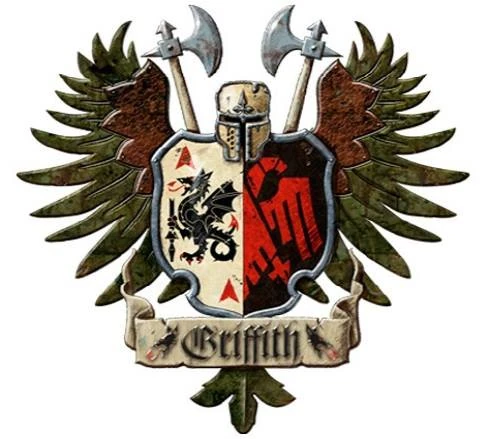 En el 981.M34, el Gran Maestro de la Lanza Paladus Griffith tomó el juramento de lealtad al Emperador de la Humanidad. Sin ningún tipo de lazos formales con un Mundo Forja del Adeptus Mechanicus, el blasón de la Casa Griffith está dominado por un par de alas estilizadas en reconocimiento de su lealtad al Imperio de la Humanidad. A un lado del emblema del escudo un gran dragón Alvirax sostiene la lanza rota blasonada con orgullo en el tradicional bronce Griffith, y por otro lado se muestra un semi águila roja en un campo negro. Esta misma separación en dos se utiliza en la mayor parte de las heráldicas de las Casas de Caballeros; en este caso, simbolizando la lealtad de la Casa Griffith, que se divide por igual entre su casa y el Imperio.