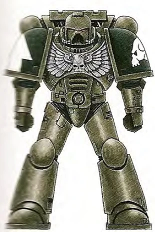 Los caparazones blindados que los recubren, con grises y negros simétricos y los bordes pulidos mecánicamente. Visten servoarmaduras grises con marcas blancas, hombreras negras y aquila pectoral negra o plateada, y muestran el color de su Compañía en la rodillera izquierda.