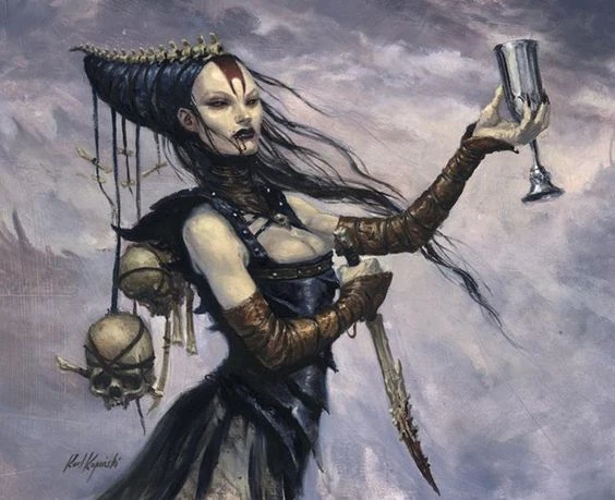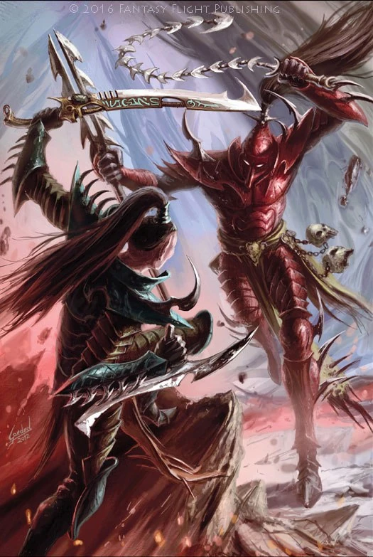 Hasta el día de hoy, los Drukhari atacan la galaxia desde la úlcera supurante que es Commorragh, sembrando la miseria y la destrucción donde sea que surjan y llevando a innumerables cautivos a sus guaridas para sus propios y horribles fines. Son maestros de la tortura y la degradación, porque cuanto más tiempo un Drukhari puede alargar el castigo de un cautivo, mayores son los nutrientes que pueden derivarse del mismo. Un Drukhari que se ha alimentado recientemente del tormento de otros brilla con un aura fría y asombrosa, y su figura es restaurada hasta la perfección incluso cuando el espíritu dentro de él se pudre. Quien quede hambriento de tales energías durante el tiempo suficiente se convertirá en una sombra, buscando desesperadamente un trago de sufrimiento con el que evitar los dolores punzantes en las profundidades de su alma.