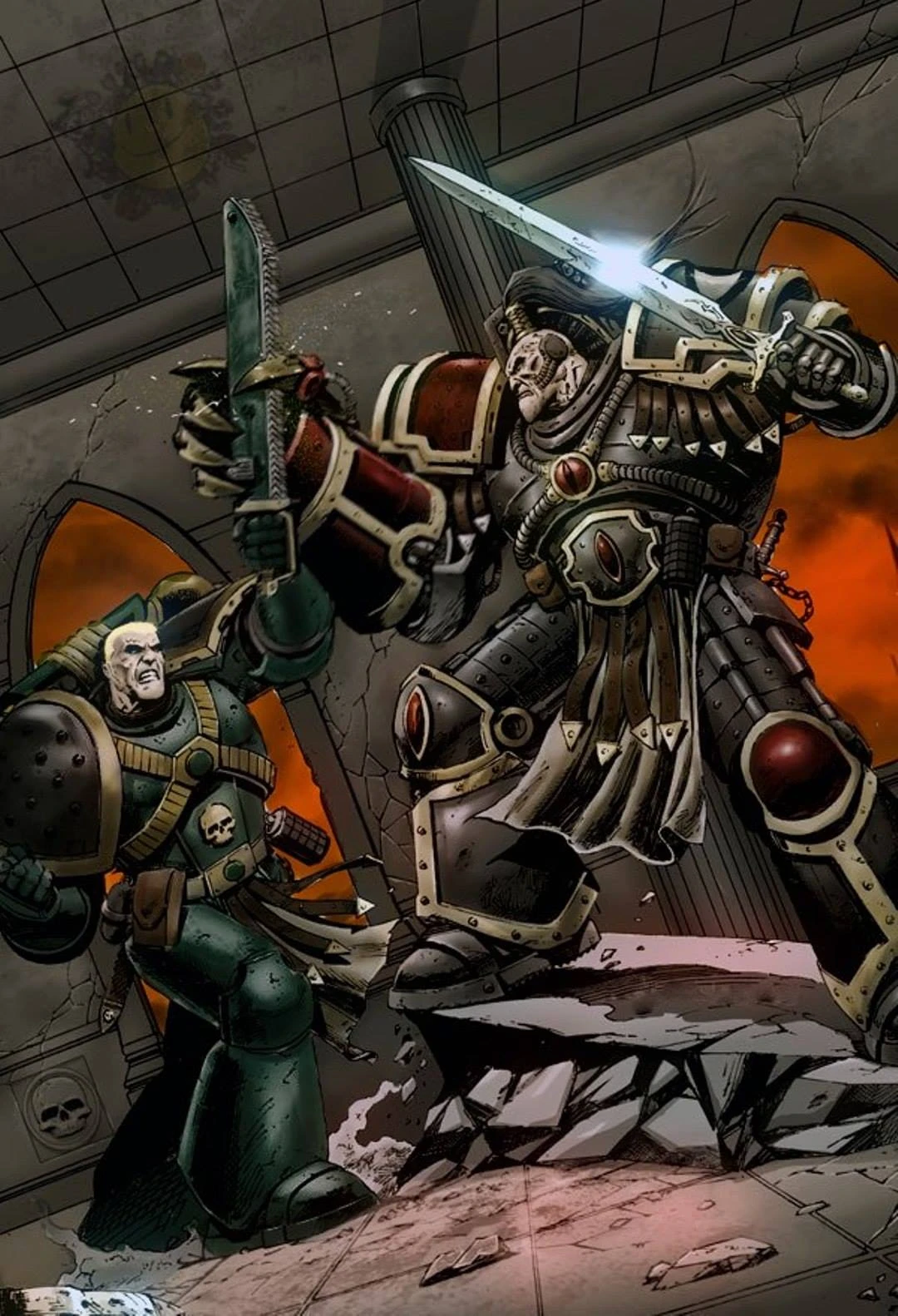 Abbadon y Loken enfrentándose en las ruinas de la Ciudad Coral