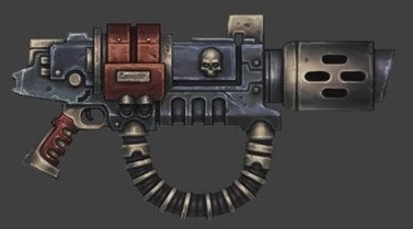 - Modelo Conflagración - Elaborado en cantidades muy limitadas por Enthor Calibos, un Tecnomarine del Capítulo de los Salamandras guarnecido a bordo la Fortaleza de la Guardia Erioch, estos rifles de fusión compactos y de alto rendimiento se han ganado el favor entre los Hermanos de Batalla de los Vigías de la Muerte que han tenido la suerte de haberlos manejado. Reflejando la minuciosa mano de obra y el profundo amor por la purificadora llama de su creador, estas poderosas armas tienen una mayor penetración y daño a expensas de su mayor consumo de energía.