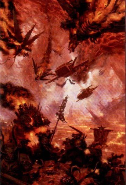 Après la mort d'Horus des mains de l'Empereur à bord de son vaisseau amiral, le Vengeful Spirit, lors de la bataille de Terra qui a vu la conclusion de l'Hérésie d'Horus, les restes des neuf légions traîtres ont fui, ainsi que les autres forces impériales traîtres qui maintenant servi Chaos, dans une zone de la galaxie où le Warp est apparu dans l'espace réel, créant la tempête Warp permanente connue sous le nom d'Œil de la Terreur.