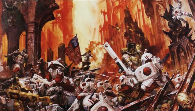 Toschenko zrozumiał, że wróg odcina i wykańcza pojedyncze punkty oporu i że nie zdoła wygrać, jeśli nie przypuści kontrataku. Wysłano więc sygnał do ataku i ponad dwa tysiące Vostroyan wstało i ruszyło naprzód, na zniszczone ulice oraz do katedry, gdzie barbarzyńscy obcy pożerali ich kolegów. Gwardziści odpłacili z nawiązką obcym, którzy wycofali się z katedry. Podsycony przez ten sukces Toschenko rozkazał ruszyć dalej. Jego ludzie oczyścili warsztaty po czym ruszyli na otwartą przestrzeń. Napotkali tam jedynie niewielki opór, ponieważ Brightsword zastawił pułapkę. Znajdujące się na dachach pancerze Crisis wystrzeliły w kierunku piechoty a kierowany przez obserwatorów ostrzał niszczył pojazdy ludzi.