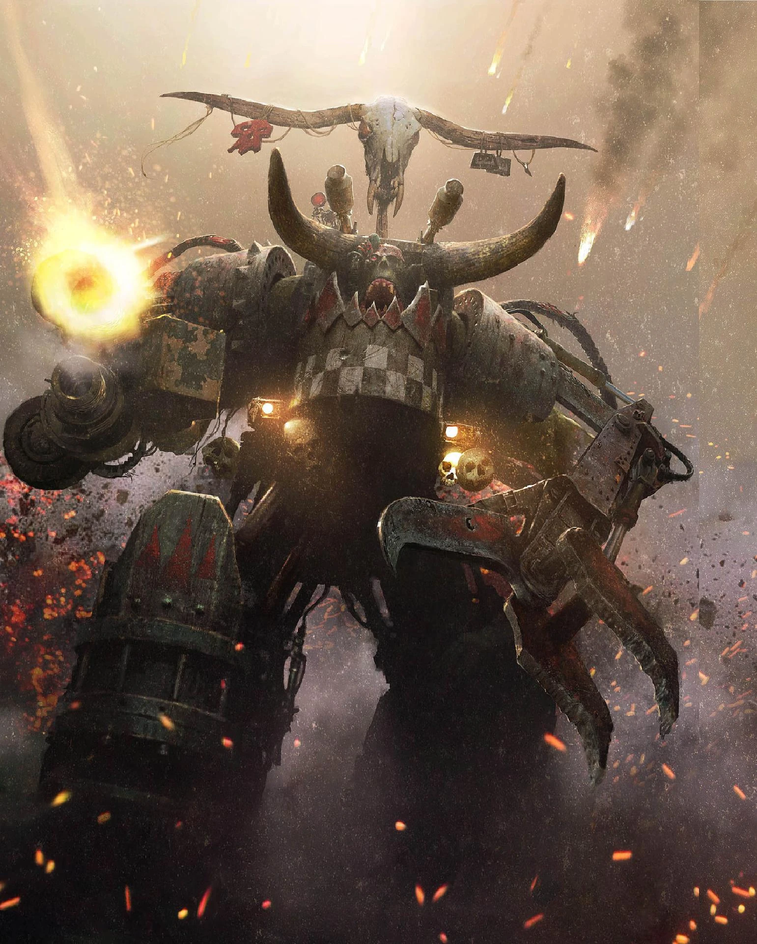 Miliardy maszerują na wojnę z jego imieniem na ustach. Wiedzieć należy jednak, że nie zawsze tak było. Ghazghkull rozpoczął swoją karierę jako zwykły żołnierz Gofów na prowincjonalnej planecie Urk. Podczas ataku na punkt dowodzenia Kosmicznych Marines, otrzymał trafienie z boltera prosto w twarz. Duża część jego czaszki została zniszczona, doszło również do poważnego uszkodzenia mózgu. Na szczęście w pobliżu znajdował się Konował Trupich Czach, znany jako Szalony Dok Grotsnik, który zastąpił ubytki w mózgu Ghazghkulla wykonanymi z adamantynu elementami bionicznymi. Być może to właśnie bionika obudziła w Ghazghkullu jakieś ukryte moce psychiczne, możliwe również, że Ghazghkull cierpi po prostu na najzwyklejsze omamy. Tak czy owak, od tamtego momentu zaczął on twierdzić, że utrzymuje bezpośredni kontakt z orkowymi bóstwami, Gorkiem i Morkiem. Jakaś mroczna siła musiała jednak upodobać sobie Ghazghkulla, bo zrobił pośród orkowych plemion zawrotną karierę. Wspinał się po szczeblach awansu, aż w końcu osiągnął pozycję planetarnego Arcyherszta. Orkowie szanują siłę, odwagę oraz waleczność - nie sposób zaprzeczyć, że Ghazghkull wszystkie te cechy posiadał. I to w nadmiarze. Oprócz tego dysponował czymś, czego większości Arcyhersztów brakuje – był Orkiem z wizją. Wygłaszał płomienne mowy, w których przekonywał, że misją Orków jest podbój galaktyki. Gdziekolwiek się zjawił, jednoczył walczące między sobą plemiona, dając im nieodparte poczucie wspólnego przeznaczenia. To wszystko nie miałoby jednak znaczenia, gdyby słońce planety Urk nie zaczęło słabnąć, migotać, by w końcu zgasnąć. Wówczas Ghazghkull przekonał Orków, że był to znak od Gorka, sygnał do rozpoczęcia WAAAGH! większego niż jakiekolwiek wcześniej. Ci, którzy zdecydowali przyłączyć się do wielkiej krucjaty, mieli pójść za Ghazghkullem. Pozostali zaś musieli zginąć. Orkowie co do jednego wybrali drogę, którą wskazał im prorok. Mieli podbić znaną galaktykę lub oddać życie w dążeniu do tego celu.