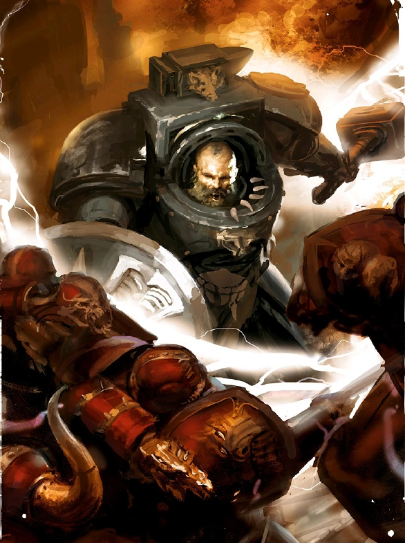 Kiedy siły Pożeraczy Światów oraz ich Demonicznych sojuszników rozbijają się o siły Imperium jak fala o skały, zdenerwowany Angron postanawia osobiście poprowadzić natarcie na Helsreach oraz ule "Infernus". On i dwunastu Krwiopijców, stanowiących jego gwardię przyboczną. Wielu Wilczych Lordów, głodnych chwały, zapewne zaatakowało by Upadłego, jednak Logan wiedział, że odwaga oraz kawałek stali nie wystarczy. Dlatego tuż przed przybyciem na Armageddon, Grimnar zawołał na pomoc sojuszników. Na jego zawołanie, Terminatorzy Szarych Rycerzy teleportowali się wprost przed obliczę Angrona oraz jego Krwiopijców.