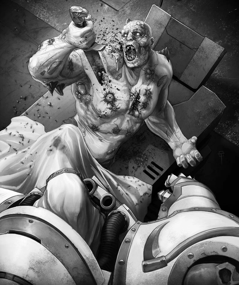 Wtedy to właśnie ujawniła się wada legendarnej wytrzymałości XIV Legionu przez. którą nie byli w stanie umrzeć cierpiąc nieprzerwane męki podczas gdy ich ciała były powoli zamieniane z zgniliznę i ropiejące tkanki przez wielkie roje kąsających owadów. To właśnie Plaga Niszczyciela była bezpośrednią przyczyną trafienia Gwardii Śmierci w objęcia Papy Nurgla. Typhon został hojnie wynagrodzony za swoje zasługi darem, który sprawił, że stał się nosicielem Plagi Niszczyciela by móc sprowadzać śmierć i zepsucie wszędzie tam gdzie się pojawi. Kapitan Gwardii Śmierci znany od tamtej pory jako Typhus przemierza rzeczywistość w celu rozprzestrzeniania swojego daru przyczyniając się tym samym do śmierci miliardów istnień.