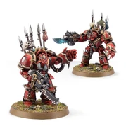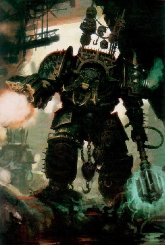 Zbroja Terminatorska będąca na wyposażeniu sił Chaosu, staje się tak zepsuta i zdeprawowana, jak odziany w nią zdrajca. Tam, gdzie niegdyś widniały symbole Imperium, na naramiennikach i nagolennikach, pojawiły się trupie czaszki i oko Horusa, przeszywające swym spojrzeniem wrogów. Ostro zakończone wieszadła na trofea wystają ponad masywnymi ramionami. Na nich rozwieszone są zazwyczaj czaszki wroga