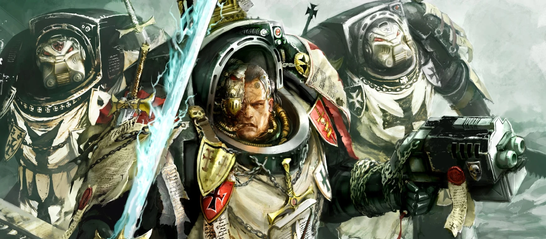 W tym samym czasie, głębiej w katakumbach, Belisarius Cawl pod okiem Trazyna Nieskończonego skupił swoją pracę nad pylonem znajdującym się w centrum Pól Elyzjona. Z każdą kolejną chwilą i kalkulacją coraz bardziej rozumiał zawiłe działanie i cel istnienia monolitu. Nekron obserwował z małego dystansu, nie chcąc prowokować serwitorów Przełamywaczy typu Kataphron, którzy mieli strzec Cawla, gdyby obcy miał zamiar go zdradzić. Sam Trazyn jednak nie wiedział co zamierza zrobić. Zastanawiał się czy przybył jako wybawiciel czy jako złodziej. Ogarnięty niepewnością obserwował dalej, w ciszy. Wtem zachodnia ściana potężnej pieczary zawaliła się a zza jej gruzów wyszły odziane w czarne pancerze postaci. Wbiły się w linię Elektro-Kapłanów, którzy nie byli w stanie powstrzymać wroga. Wśród zdrajców był także Abaddon, potężny czempion dawał upust swej nienawiści każdym ciosem pradawnej broni. Trazyn wiedział, że imperialni nie zatrzymają swych najeźdźców. Wyjął więc ze swego płaszcza święcący przedmiot, labirynt hipersześcienny, po czym rzucił go w centrum szalejącej walki. Z jego wnętrza wydostali się uwięzieni wojownicy. Była to zaledwie garstka imperialnej kolekcji Trazyna, zebrana z pękających w szwach archiwów lub krypt gdzie przechowywano zduplikowane eksponaty. Niektórzy zostali kolekcją Nekrona dawno temu, inni zostali włączeni w jej poczet nawet kilka miesięcy temu. Z perspektywy porucznika-komandora Cerantesa z Ultramarines od mrocznych dni Herezji Horusa minęła zaledwie chwila. Dla jego Marines i Drendotów typu Contemptor wystarczyły jedynie plugawe symbole Chaosu i dwugłowy imperialny orzeł, by włączyli się do walki z typowym dla Astartes zapałem. Innym nie poszło tak łatwo. XXI Vostroyański, wzięty w niewolę podczas jednej z niezliczonych inwazji Orków w Segmentum Obscurus, dostał choroby stazowej, kiedy zamglone zmysły z powrotem znalazły się w rzeczywistości. Widząc jednak co dzieje się dokoła żołnierze otrząsnęli się, wydano rozkazy i Vostroyanie dołączyli do bitwy. Wraz z nimi ruszyli snajperzy z dawno temu spustoszonej Tanith, Salamandry, które uznano za zaginione podczas Katastrofy Kloviańskiej oraz pojedynczy wojownik w złotym pancerzu ozdobionym insygniami orła i szkarłatnym pióropuszem. Nigdy taki wojownik nie był widziany tak daleko od kolebki ludzkości.
