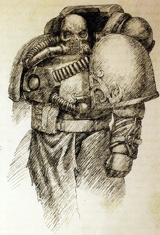 Летописный набросок примарха Рогала Дорна периода Великого крестового похода