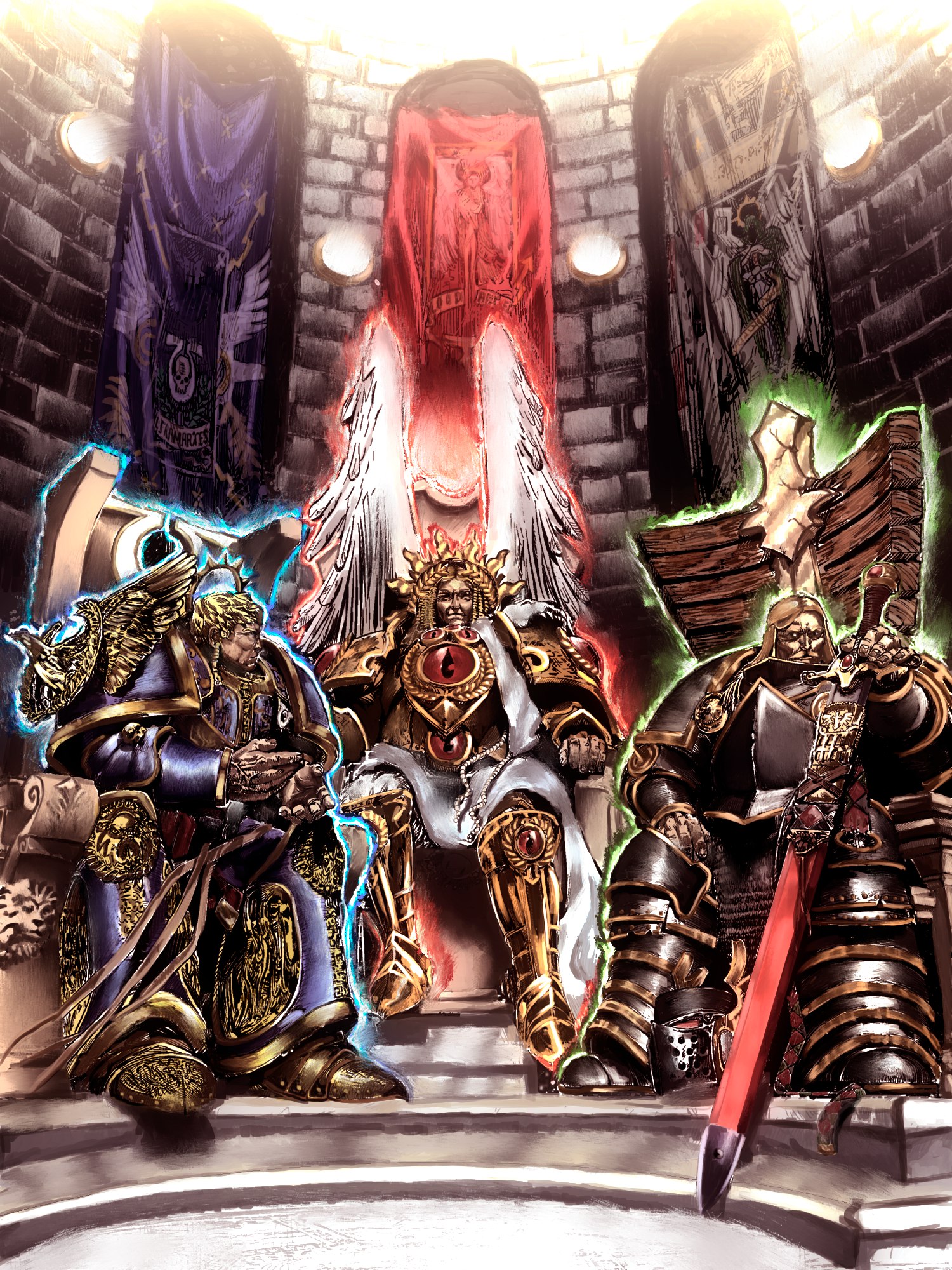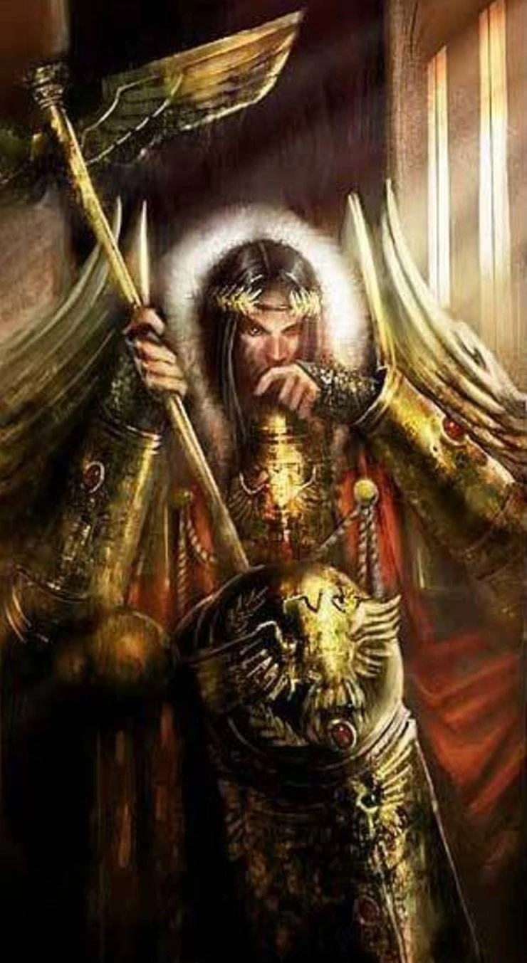Император дарует Хорусу титул Воителя — главнокомандующего всех имперских армий и доверяет ему завершение Великого крестового похода (фан-арт)