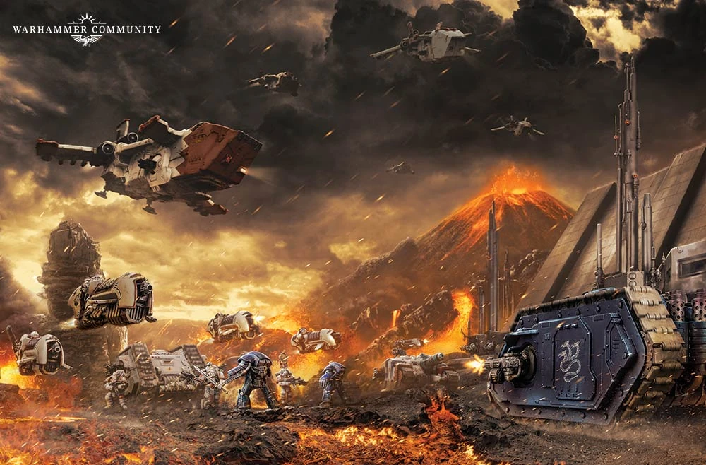 - 006.М31 — осада Мезоа. Войска предательских механикумов блокируют и осаждают беззаветно преданный своим клятвам мир-кузницу Мезоа. Возглавляемым Альфа-Легионом и Железными Воинами армиям Воителя ценой огромных потерь удаётся захватить зоны высадки. Уцелевшие силы сопротивления сосредотачиваются вокруг несокрушимого легиона Имперских Кулаков и уцелевших подразделений легиона Саламандр, едва держащих оборону перед лицом натиска предателей. В последней отчаянной попытке переломить ход конфликта магосы Мезоа превращают в оружие свою собственную родину, запуская расплавленные плиты планетарной коры прямо в космос, чтобы уничтожить висящие на орбите корабли изменников. Во главе с пепельно-чёрной машиной, именуемой некоторыми «Драконом», обороняющиеся лоялисты продолжают яростное сопротивление неприятелю, а сама Мезоа остаётся одиноким светочем верности посреди тьмы предательских владений.