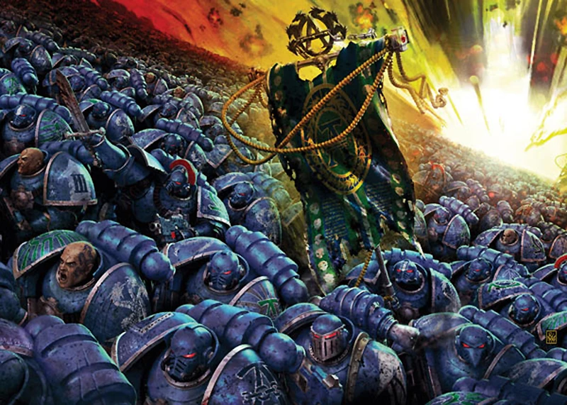 - Приблизительно 100 000 воинов IX легиона: Кровавые Ангелы выставили для участия в кампании 85% общей численности легиона, оставив контингент из 3 000 в качестве гарнизона Ваала, в то время как ещё 10 000 — 15 000 продолжали службу в малочисленных дальних гарнизонах, на кораблях флотилий Великого крестового похода и в зонах боевых действий.