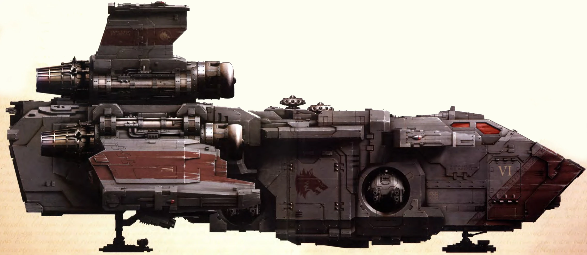 - Транспортный ковчег Легио Кибернетика «Сигма-954». Боевые автоматоны «Орлиные Черепа» (выс. готик «Капита Аквилэ») издавна служили во флоте примарха Сангвиния, и их корабль одновременно нёс на своём борту и шестерню Механикума, и кровавую каплю — символ благосклонности Великого Ангела.