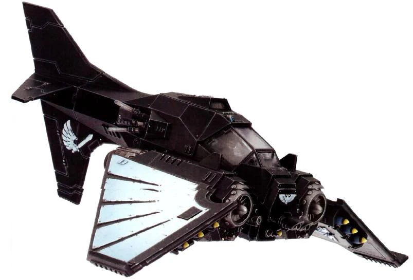В поисках пилотов для столь быстроходной штурмовой техники Тёмные Ангелы, естественно, обратились к Крылу Ворона, ибо вторая рота развивает навыки, необходимые для такого быстрого маневрирования. С самого формирования роты все члены Крыла Ворона учились управлять любой техникой, которую рота применяет в бою. Впрочем, именно космодесантники наиболее многочисленных второго и третьего отделения традиционно служат пилотами на передовой. В целом же Тёмные Ангелы проявляют консерватизм, когда речь заходит об их боевом снаряжении, предпочитая стандартное вооружение и технику, служившую ордену на протяжении тысяч лет. Однако пилоты Крыла Ворона не выказывают такой неуступчивости. Они почитают древние реликвии, которые используются в бою с дней Великого крестового похода, но и постоянно подталкивают технодесантников работать над улучшениями, модификациями или новой техникой — всем, что может увеличить скорость, с которой они могут обрушиться на тех, кто отвергает волю Императора.