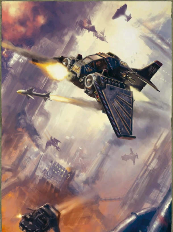 При приоритете выполнения штурмовых атак по наземным целям над воздушным боем технодесантники ордена могут заменить спаренную лазпушку самолёта мощным мегаболтером «Мститель», который стреляет разрывными болтами, предназначенными для того, чтобы пробивать даже самую крепкую броню.