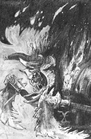 Обуянный гневом Кхорн схватил пожирателя душ за горло. Бог Крови проклял имя Скарбранда и вытянул из него всю личность, оставив только ярость, заставившую безумца напасть. Взобравшись на высочайшую башню Медной Твердыни, Кхорн сбросил демона вниз, в бездну Пределов Хаоса, изгнав Кровожада из своих владений. Восемь дней и восемь ночей Скарбранд падал вниз — огненная комета, несущаяся по спокойному небу. Мощь удара о твердь выбила в земле целое ущелье и превратила крылья твари в обугленные лохмотья. С того страшного дня Скарбранд бродит по мирам живых и демонов, пытаясь искупить свои грехи кровью убиваемых.
