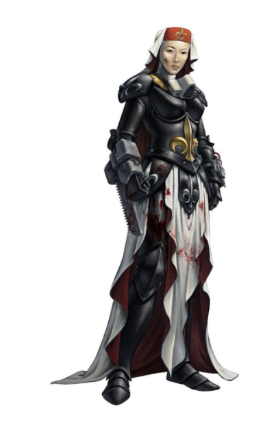 The overall commander and spiritual leader of the entire Sisterhood and all its myriad Orders is the abbess sanctorum, the leader of the Convent Prioris on Holy Terra.
