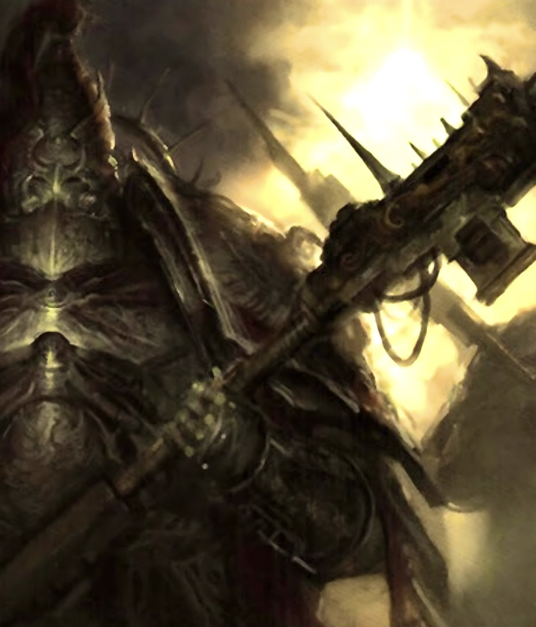 After the breaking of the Orks upon Ullanor, the Emperor returned to Terra, taking His Custodian Guard with him. The seeds of doubt He left behind among the Space Marine Legions soon became the roots of treachery, for there is darkness in every Human soul, and the Ruinous Powers have always known how to exploit it. Before a single generation had passed, the insidious taint of Chaos had infected a full half of the Emperor's primarchs, Horus foremost amongst them. These Arch-traitors spread the moral decay to the Legiones Astartes they led, and the galaxy was lit with the fires of strife and civil war.