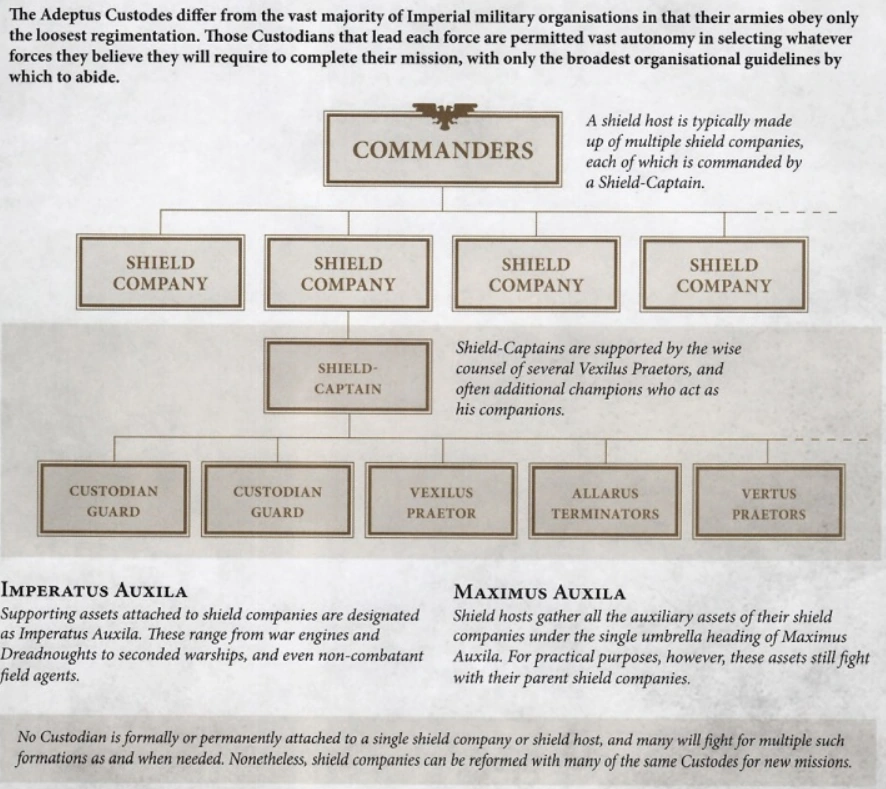 | Command | Captain-General • Custodian Tribunate • Captain-Commander (Guardian Captain-Commander • Allarus Captain-Commander • Vertus Captain-Commander) • Shield-Captain |