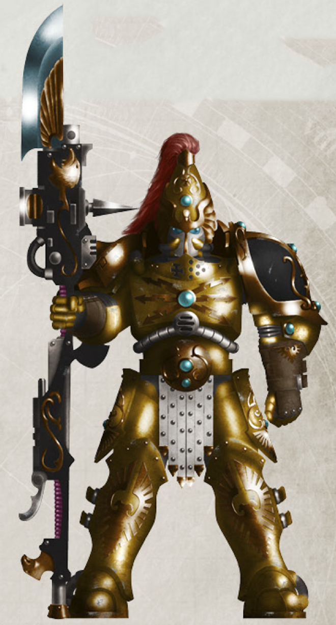 To the common soldier and planetary governor alike, the golden-armoured image of the Custodian Guard was a visible sign not only of the Emperor's direct protection and the embodiment of His will and agency, but also the omen of His unstoppable wrath, as personal and as terrifying in their way as the Angels of Death, His Space Marines, were impersonal and all-conquering avatars in the minds of many of the Great Crusade itself.