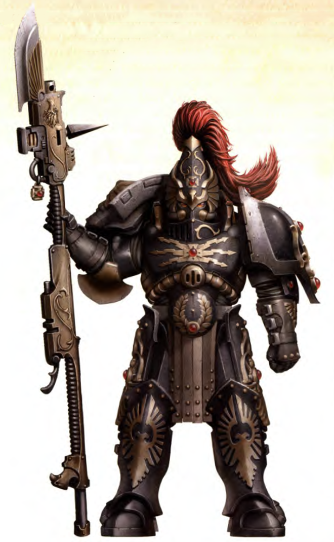 The Custodians have long worn the shroud of shame after that fateful day. In grave ceremony they donned black cloaks to symbolise the pall of darkness that had fallen over their order. The Emperor's realm, wracked by the tempest of heresy, was reforged by those primarchs that survived the great upheaval. Largely through the efforts of the Ultramarines Primarch Roboute Guilliman as the first Lord Commander of the Imperium, the byzantine organisations of the Imperium were reordered during the period remembered as the Time of Rebirth in such a way as to ensure that no one faction or power could again threaten Terra or the rule of the Emperor.