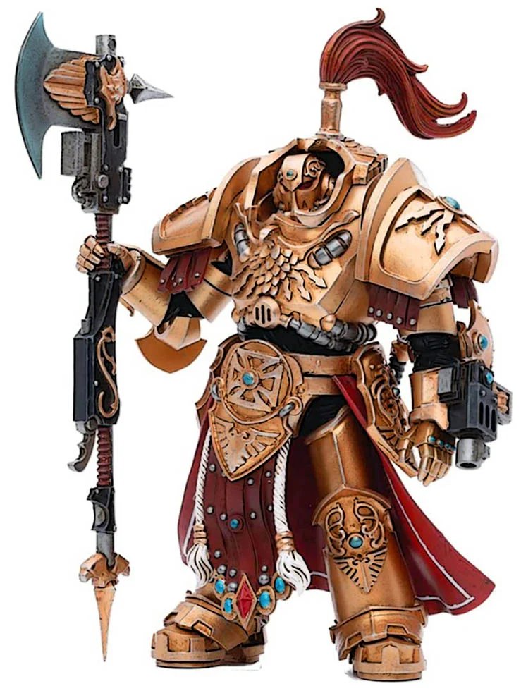 Alongside the female order of anti-psykers known as the Sisters of Silence, the Adeptus Custodes bring war anew to the enemies of the Imperium. All shall learn to fear their golden warships, for they herald swift and unmerciful slaughter. These are heroes of fire and blade, and they will not stop until every threat to their immortal master lies slain.