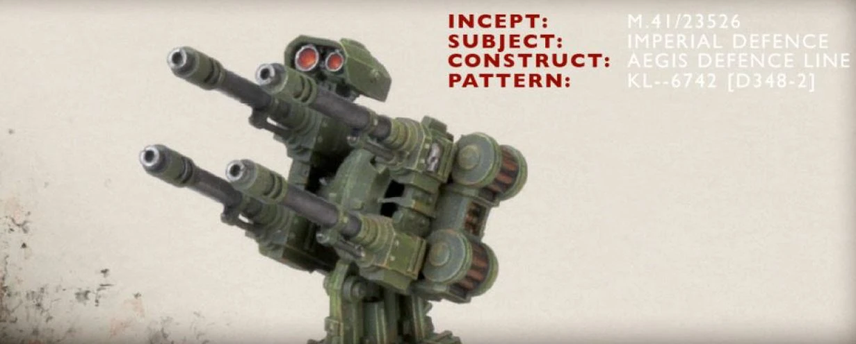 An Aegis Defence Line can be protected by heavy weapon emplacements such as a quadruple Autocannon for anti-infantry protection or, for anti-air defence, an Icarus Pattern Lascannon.