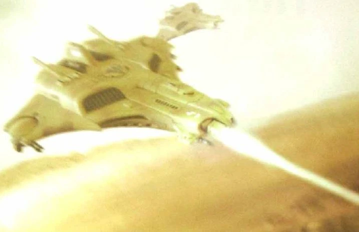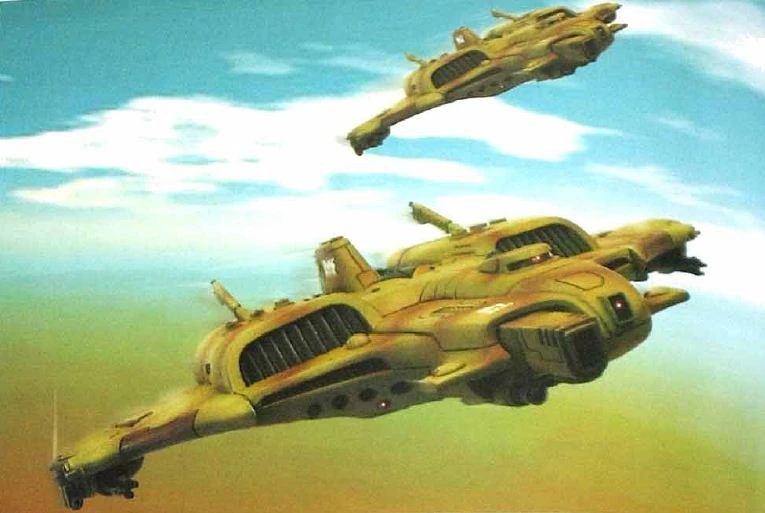 Winning the air war against the Imperial Navy was vital to the T'au's plans, and Barracudas and Thunderbolts fought daily for control of the skies. Flying from well-concealed desert air bases on the Iracunda Isthmus, the Barracudas eventually won the battle.