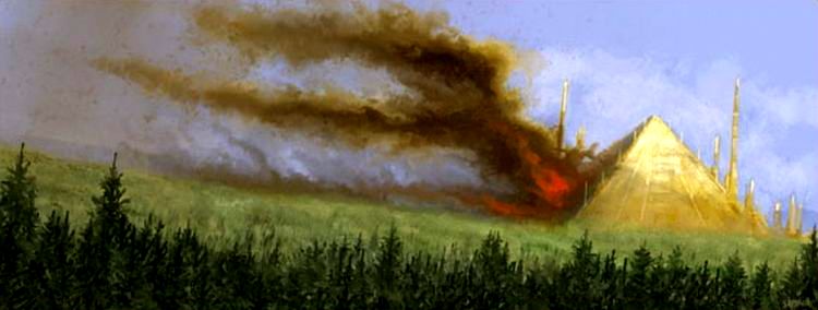 Magnus the Red watched as the lightstorm blistered and burst over his beautiful city. The sky was stained a bloody orange as airbursting incendiary rounds burned the clouds away, and a tear fell from his eye as he watched the beautiful land around Tizca die. The forests were burned to ash and the wild grasslands blazed with secondary fires, reducing the unspoiled countryside to a wasteland in a matter of minutes. The Desolation of Prospero was complete. Now the Primarch knew how his father felt about his psychic intrusion into the Imperial Palace and his continued use of sorcery. He accepted his just punishment for his arrogance in flagrantly disobeying the Emperor's wise edicts.