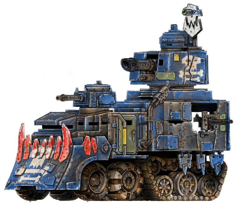 | Main Armament: | Low velocity heavy gun (85mm) equipped with explosive shells, multiple Xenos pattern light autocannon (ref "Big Shoota") | ||