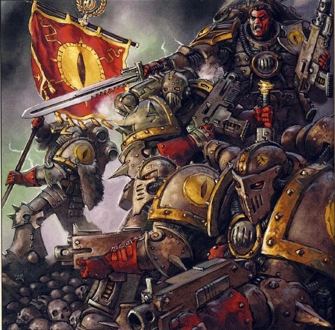 Bereft of their glorious primarch, the Legion floundered, and in desperation turned to each of the Chaos Gods in turn in their search for renewed power, inviting daemonic possession and the ever more costly blessings of the Warp.
