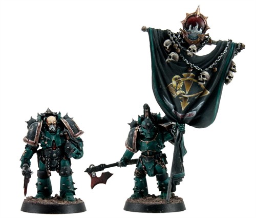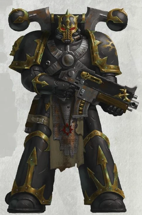 More important than a mark of shame, the black of the Legion's armour was part of Abaddon's plan to unify the Traitor Legions for his great war against the Imperium. So potent a symbol has it become that few other warbands of Chaos Space Marines ever wear black armour. It was a clear message that told of a Heretic Astartes' devotion to Abaddon and that he had forsaken all other oaths.
