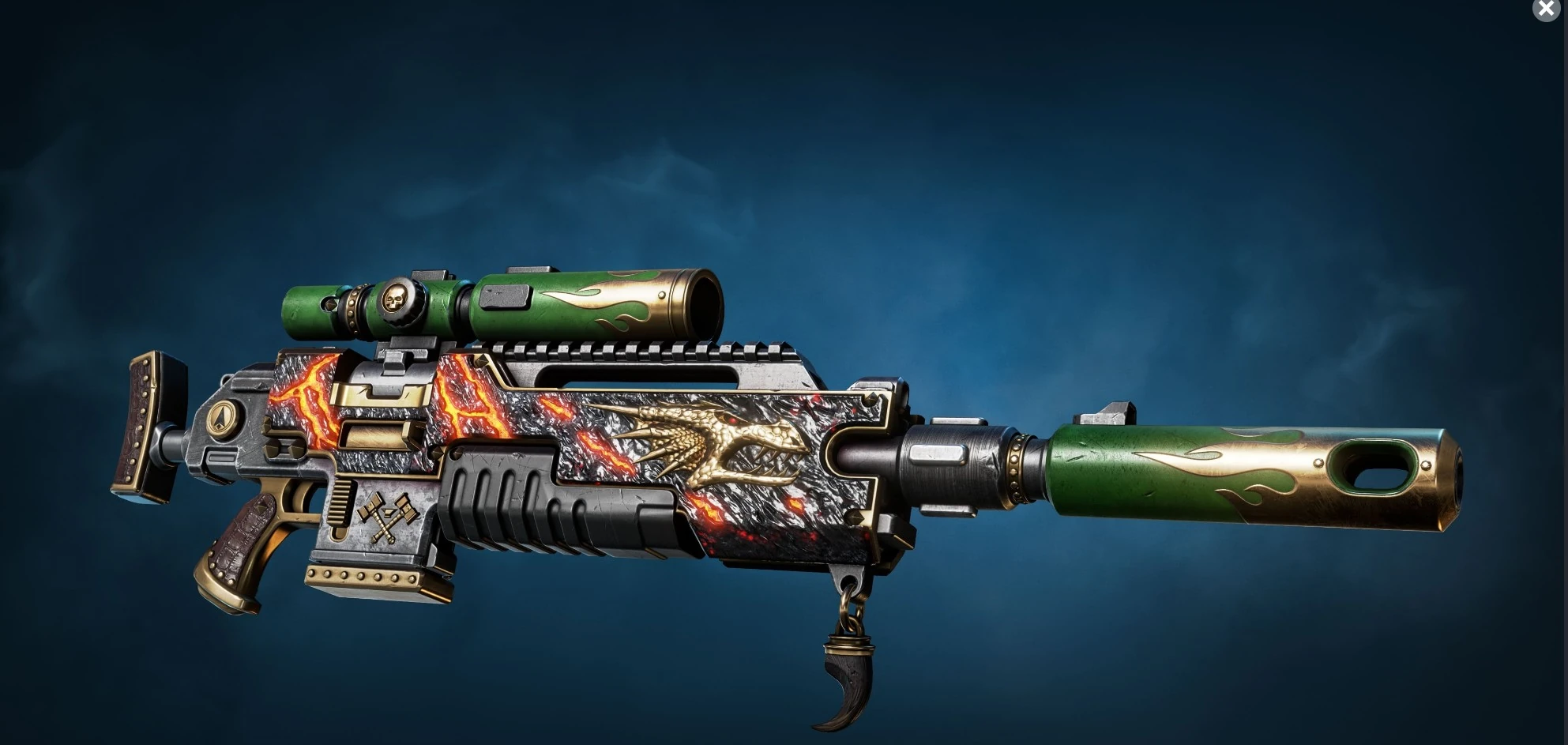 A Mark III Shrike Bolt Sniper Rifle used by Salamanders Primaris Marine Eliminators.