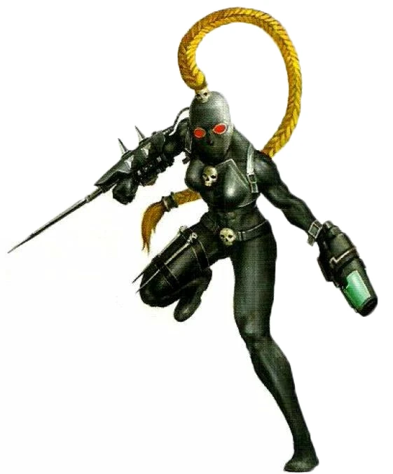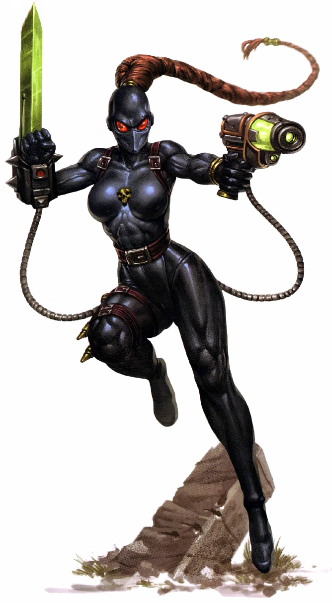 All of the Assassins of the Callidus Temple are trained in the use of polymorphine. With this specialised drug alone a Callidus Assassin may masquerade as any Human being she may choose, from a beautiful young woman to a crippled old man. However, in addition, the medicae adepts of the Imperium have developed a range of surgical implants to allow Callidus Assassins to mimic members of alien species, like the Orks and Aeldari.