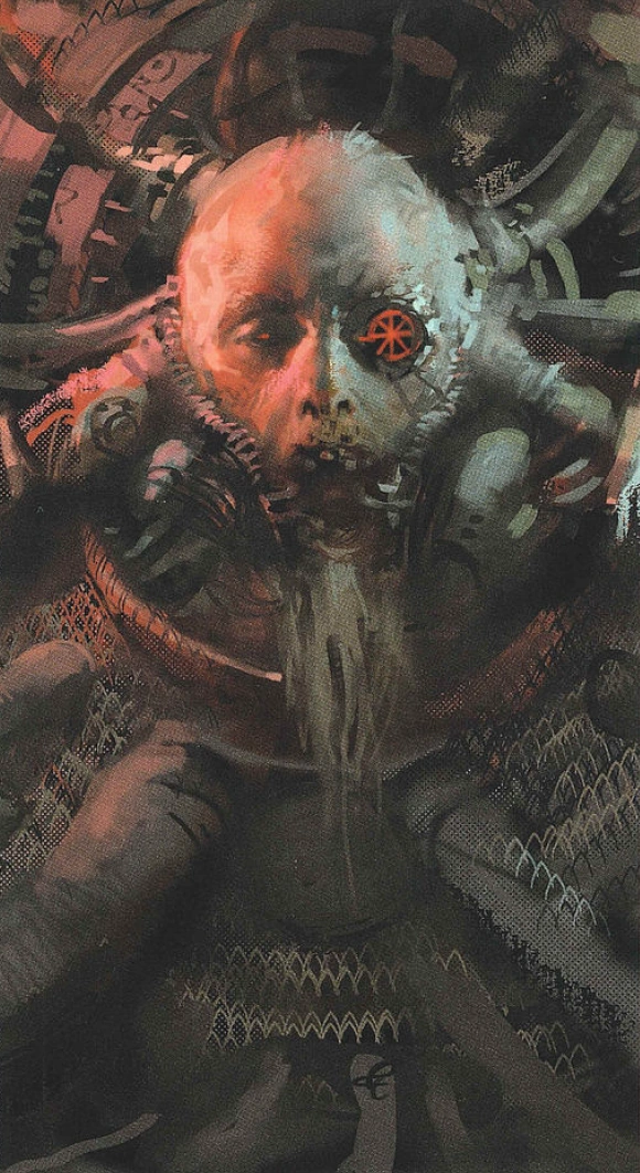 Actuators and omni-motivators are driven by streams of hateful thoughts, whilst sensory information and multi-spectrum Auspex relays feed back into the Noble's mind with burning clarity. Within each Throne Mechanicum are the spectral neural echoes of its previous pilots, screaming techno-gheists whose suffering increases exponentially as the Knight to which they are bonded grows ever more warped.