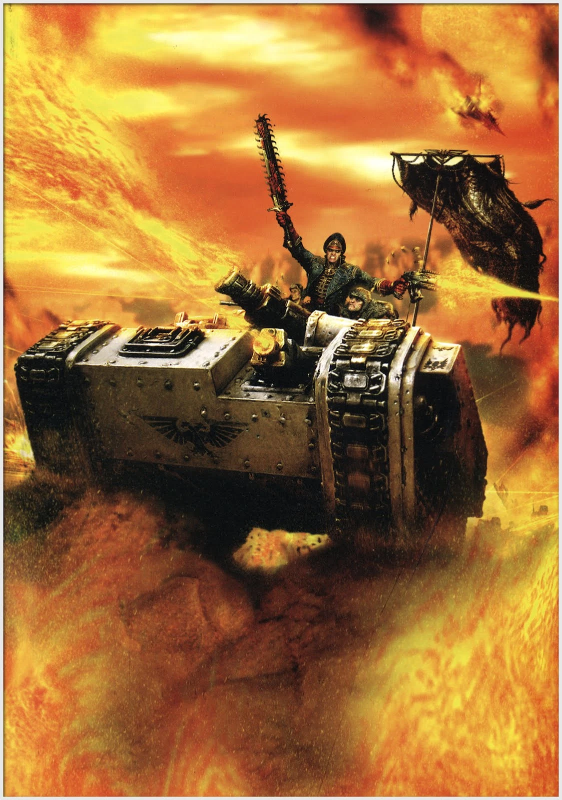 Ciaphas Cain charges into battle atop his personal Salamander.