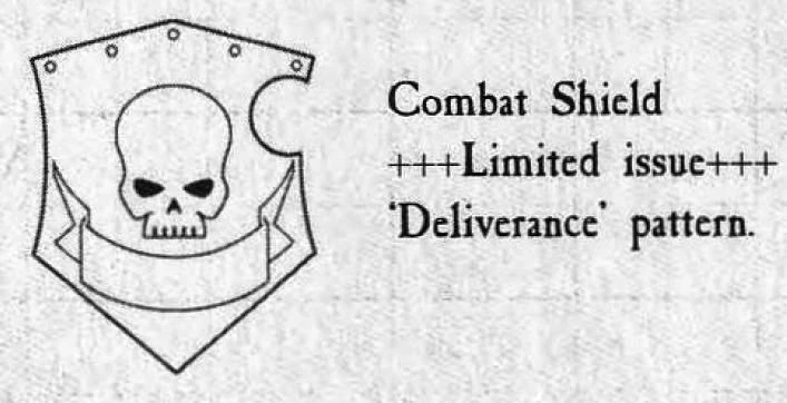 A Combat Shield is defensive wargear utilised mainly by the forces of the Adeptus Astartes. It is a lighter form of the Storm Shield often utilised by Space Marine Terminators during close combat assault actions.