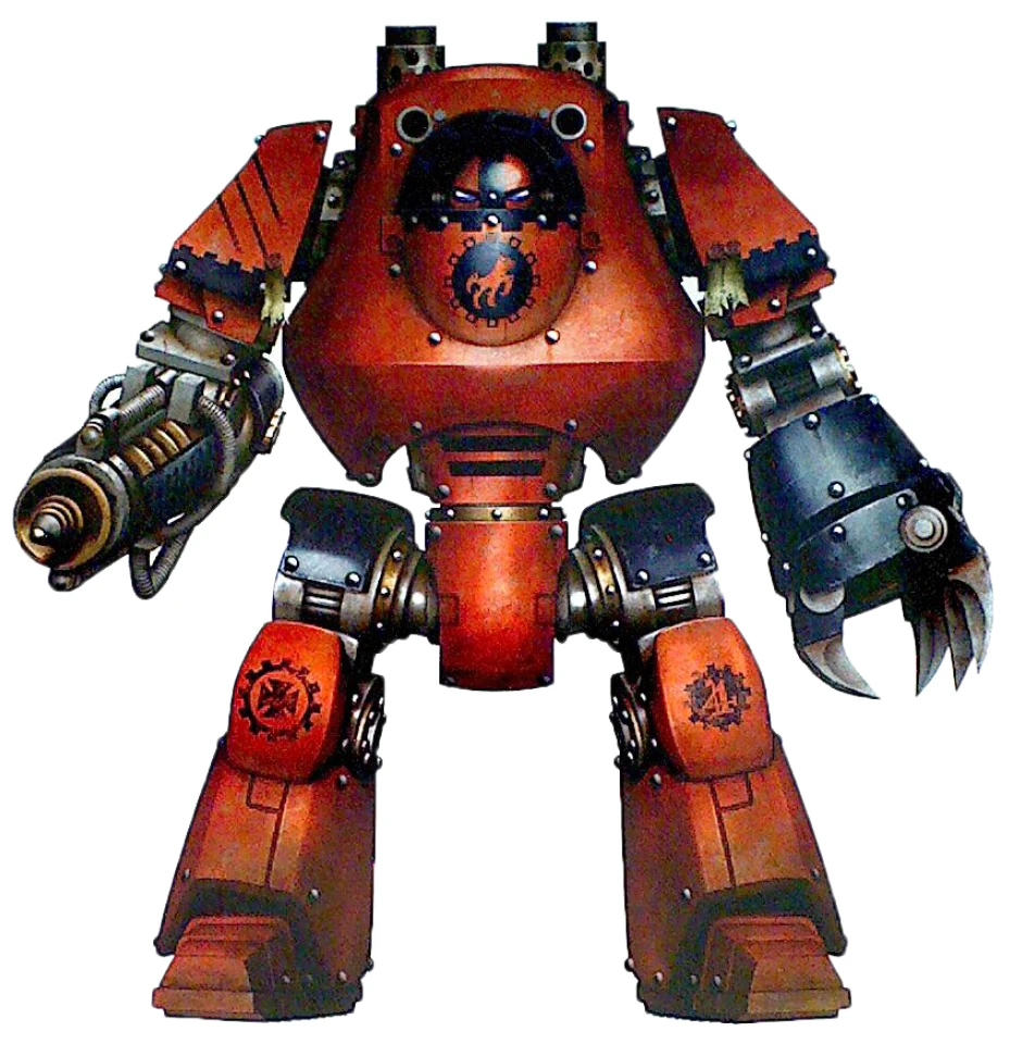 A Contemptor Pattern Dreadnought of the Red Talons Chapter outfitted with a Heavy Conversion Beamer
