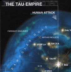 Despite the Ethereals' later instructions that the Damocles Gulf was to be off-limits to the T'au, the T'au Fire Caste's Commander Farsight established colonies there, known as the Farsight Enclaves, which have severed contact with the rest of the T'au Empire for unknown reasons.
