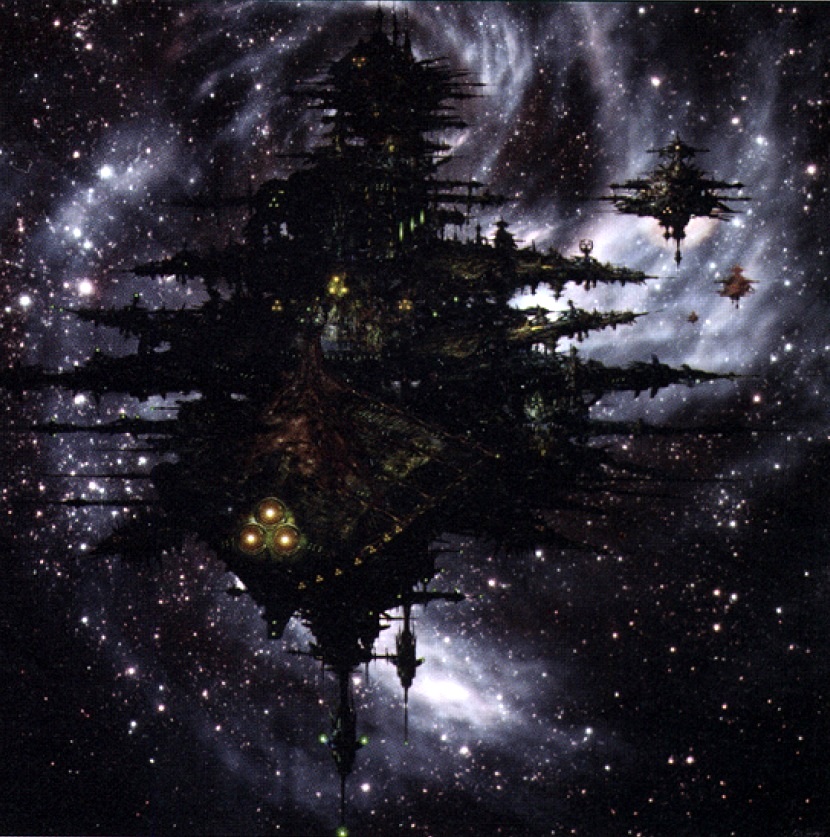 - Solace (Repulsive-class Grand Cruiser) - When this warship's hull was originally laid down in the 34th Millennium on the Forge World of Lashte, it was named Undying Valour. It entered service with Battlefleet Archon less than a Terran year after structure completion, commanded by an inexperienced captain named Lutrecia Prask. Its complement of more than thirty thousand ratings was largely drawn from Imperial Navy levy stations strung out beyond the Mourn Ring, and was graded as competent by four subsequent inspection visits. Like all the original Corinus-class Grand Cruisers, it was heavily armed, with Lance and Macrocannon arrays out of proportion to its relatively underweight Void Shielding. It transpired that the class gradually fell out of favour with Imperial commanders, though the Undying Valour served with distinction for another five hundred Terran years, gaining a kill ratio marginally higher than its reputation indicated likely. Captain Prask died in an engagement less than twenty standard years after assuming command, and was replaced by a succession of captains promoted from the lower decks. A Grand Cruiser was a world of its own, and only the very greatest Battleships regularly recruited senior officers from outside the hull -- most captains were born, raised and trained on the ship they would later command. The last of the line, Orthan Hemmo, was of this tradition, and was said to have loved the ship more than his own children, of which there were twenty before circumstances intervened to curtail his commendable contribution to the replenishment of Imperial numbers.Those circumstances came at the Battle of the Borghesh Channel, a vicious encounter in which the Imperium lost twenty vessels and had its grip loosened on three sub-sectors. By the time Imperial Navy retribution fleets overwhelmed the region more than sixty standard years later, there was no sign of the Undying Valour at its last reported coordinates -- only a slowly spinning core of metal to which Captain Hemmo's deep-frozen corpse was, it was rumoured later, nailed on tight. In truth, the Undying Valour had been taken into the Eye of Terror and stayed there for five Terran millennia. It was renamed the Solace after it became corrupted by the power of Nurgle, which made the ship semi-sentient. It was eventually taken by the Chaos Lord Vorx, commander of the Heretic Astartes warband of the Death Guard called the Lords of Silence, who ensured that the corrupted ship was placated with plenty of flesh and blood, in order to prevent the Solace from turning upon its own warriors. However this did not stop the Solace from occasionally growing tentacles in order to attack and devour members of the warband.