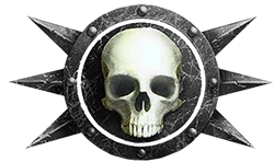 An obsolete iteration of the XIVth Legion's Badge; the Dusk Raiders' storm grey battle-plate and blood red right shoulder and arm colour schemes re-emerged on unidentified Loyalist Astartes during the Horus Heresy.