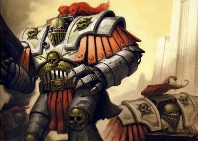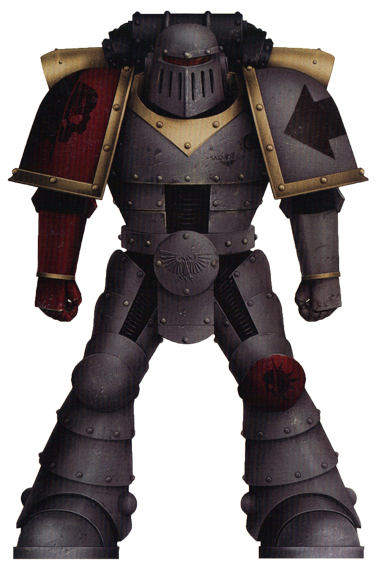 Their grey and unadorned power armour began to carry the symbols of rank and decoration, now modified that once formed the armorial imagery of the Ironsides of Old Albia, and most tellingly their right vambraces, gauntlets and shoulder plates were painted the deep crimson of drying blood, now symbolising the red right hand of the Emperor's justice where once it had proclaimed the murderous reach of the Panpacific Empire's Unspeakable King.