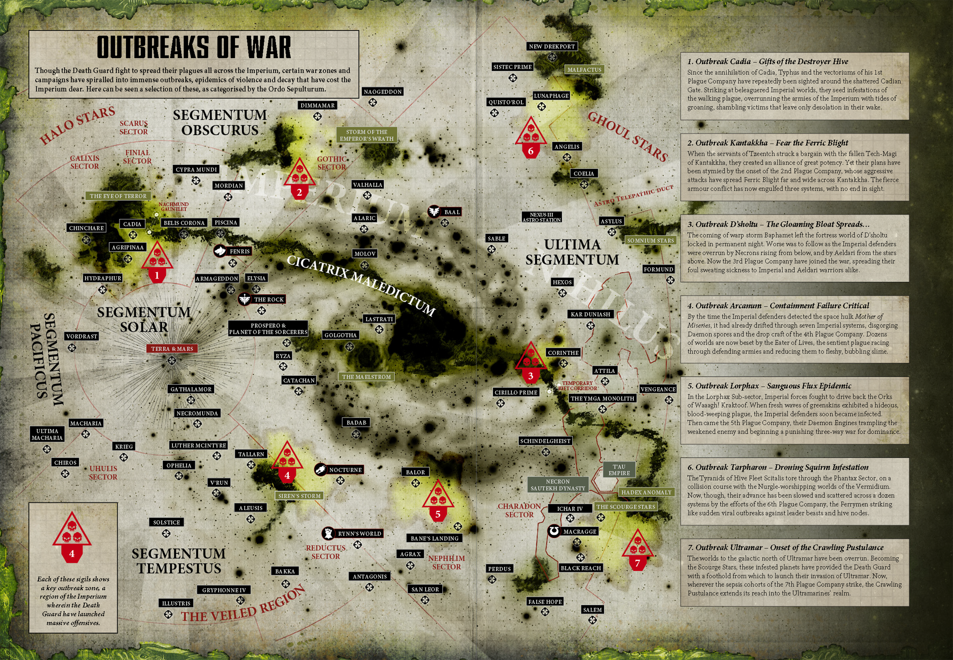 An Ordo Sepultura map of Death Guard Traitor Legion activity across the galaxy after the formation of the Great Rift in 999.M41.