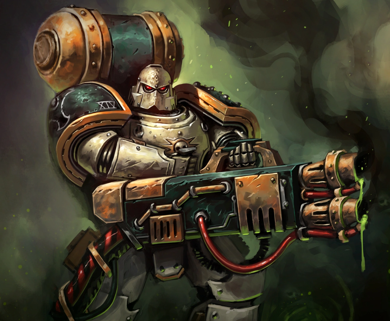 Death Guard Assault Squad spearheading an assault on a poisonous planet.
