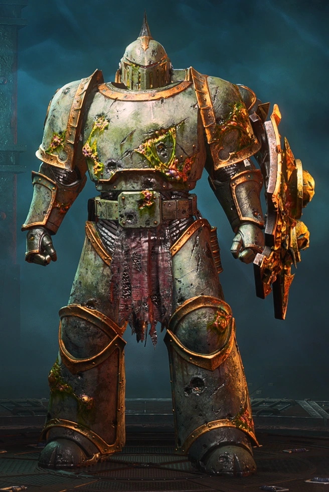 When the Horus Heresy plunged the galaxy into civil war and Mortarion joined himself and his Legion to the rebellion of the Warmaster Horus out of his unresolved anger at the Emperor, the warriors of the Death Guard found themselves becalmed in the Warp on their way to the Siege of Terra and assailed by Warp-born plagues so virulent that not even their legendary resilience could withstand them. Soon, the entire Legion was beset by a sickness that bloated their bellies with corpse gas, caused flesh to slough from their bodies and made these strongest and toughest of warriors into crippled wretches assailed by delirium.