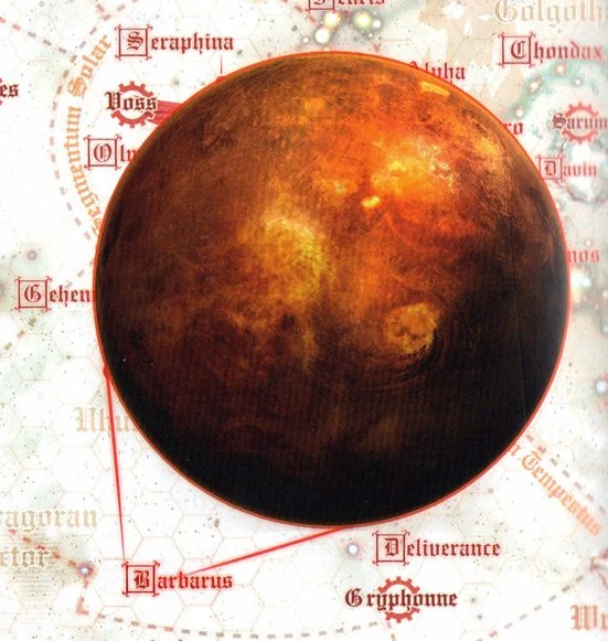 Ancient Departmento Cartographicae map indicating the location of Barbarus in the Segmentum Tempestus.