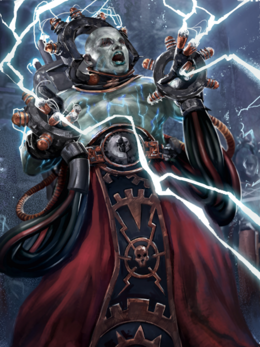 An Electro-priest is a fanatical warrior Tech-priest of the Adeptus Mechanicus who is able to wield powerful blasts of electricity as a weapon, which makes them a valuable member of the Mechanicus' Battle Congregations. These lightning-shrouded holy men and women trail after sacred machines in the manner of pilgrims and mendicants following the reliquaries of an Ecclesiarchal saint. In times of war these priests will raise a great chorus of praise to the Omnissiah, their weapons buzzing with murderous energy.