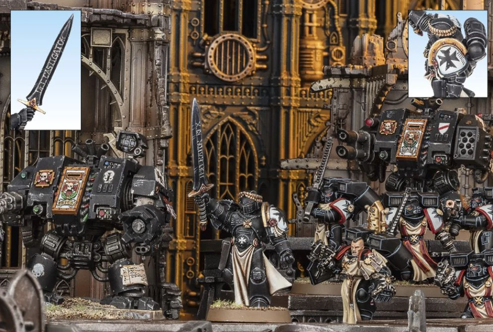 A living beacon of the Emperor's might, the Emperor's Champion raises the shining Black Sword aloft in challenge to any who would dare stand against the wrath of the Black Templars.