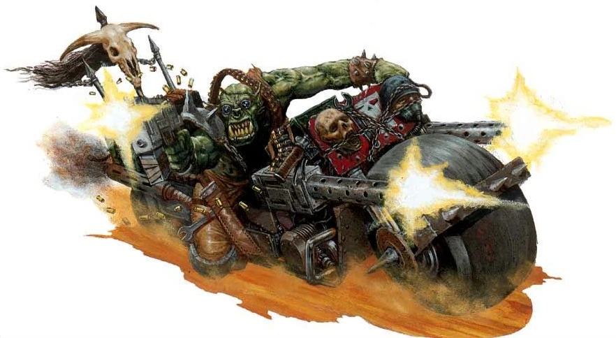 The more canny Warbosses use this to their advantage, sending their Warbikers to trigger traps and ambushes prematurely, to run down enemy supply convoys, or to soften up the foes' defences before the rest of the tribe gives them a good stomping.